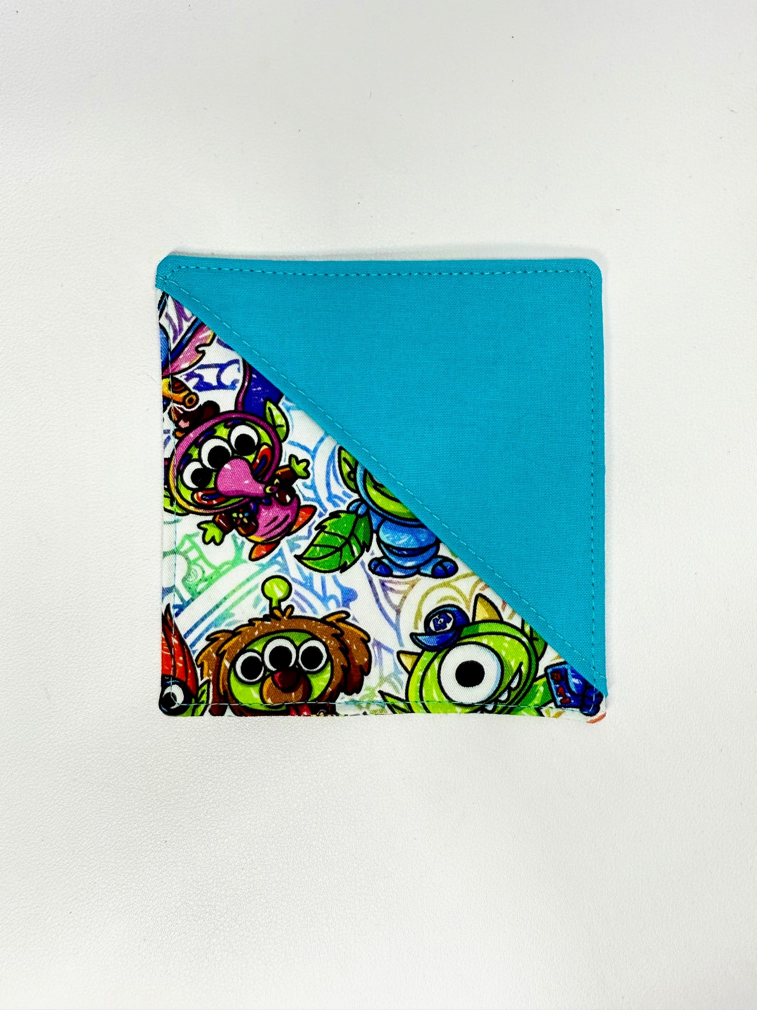 Dimensions and Material: 4.5 inches wide by 4.5 inches tall. The Fabric is cotton woven