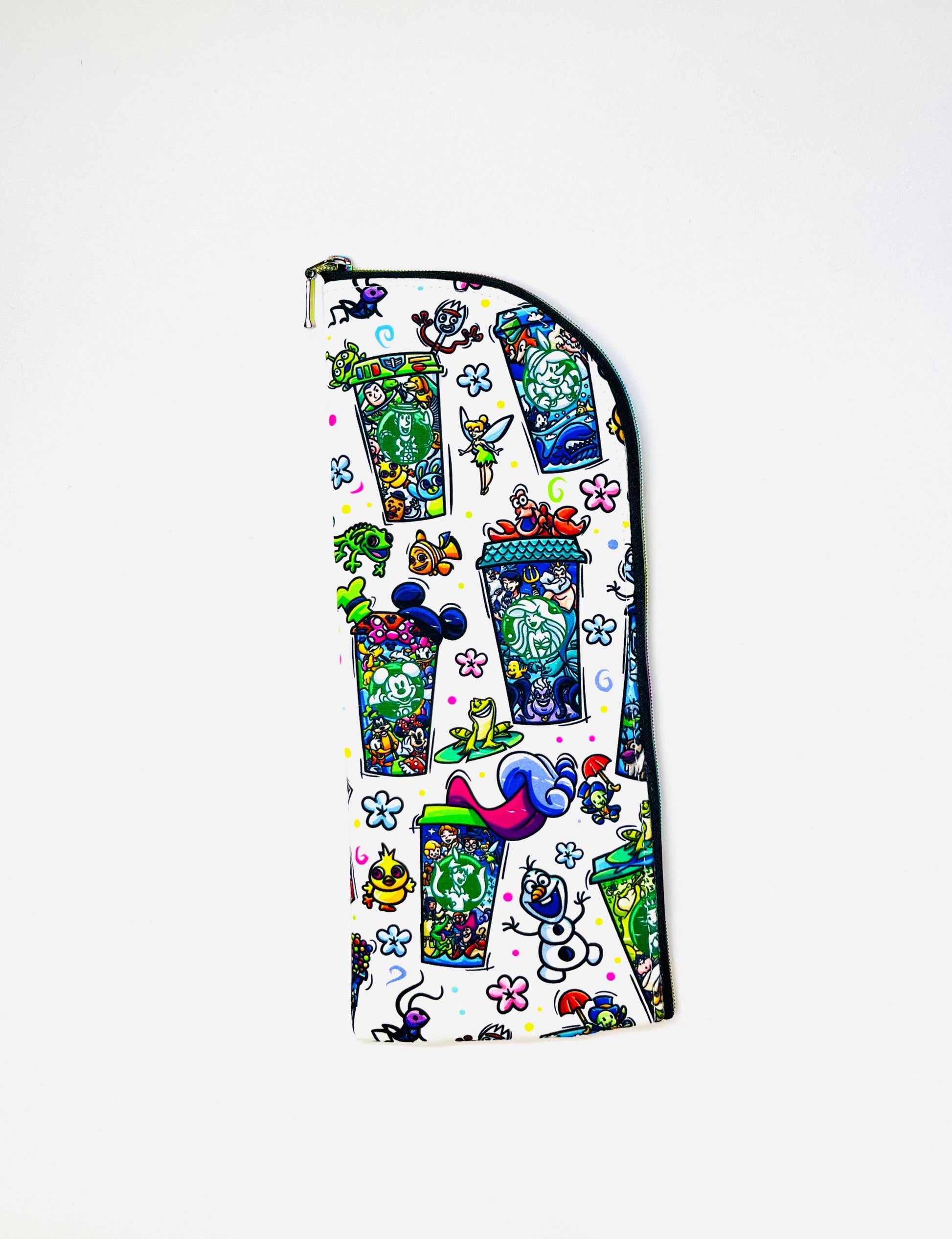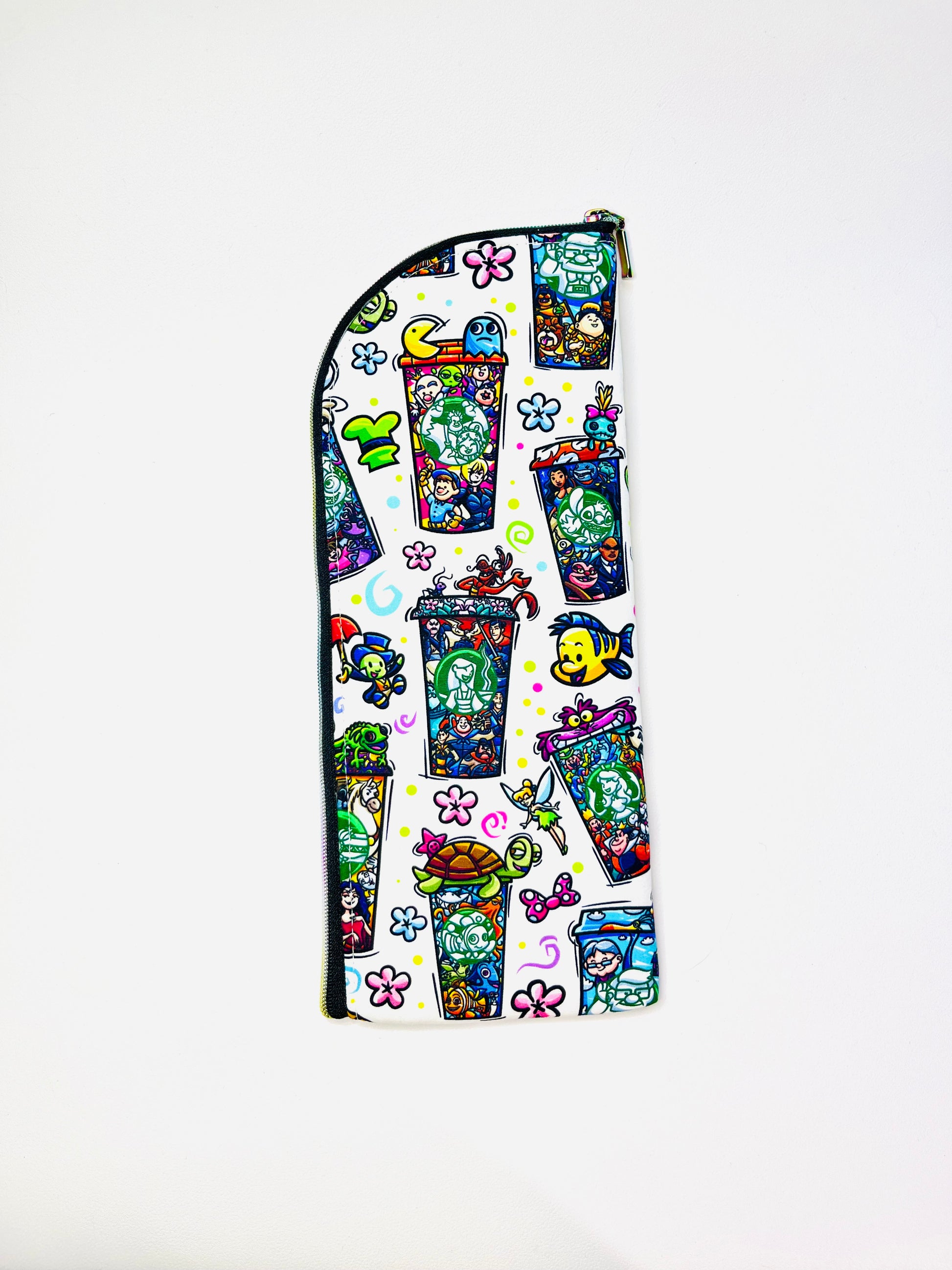 A soft case for glasses, sunglasses, as a pencil case, crochet hooks, or anything really. It will even hold reusable straws. It opens all the way, making your items quick to get out when needed and easy to put back. The case is flat when not in use, and has a foam added for extra protection when it's in your bag.