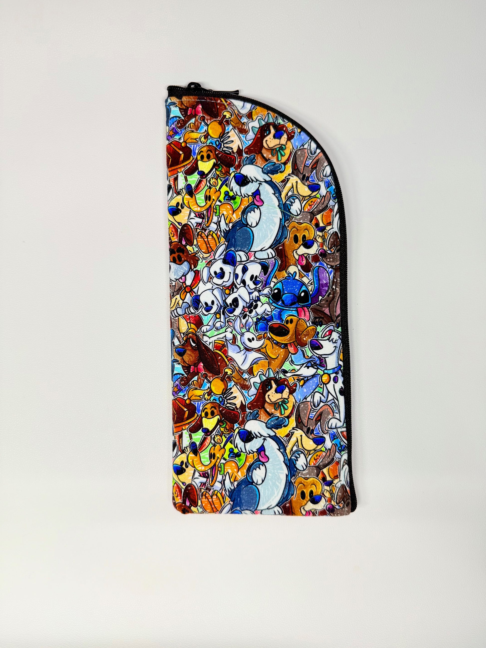 A soft case for glasses, sunglasses, as a pencil case, crochet hooks, or anything really. It will even hold reusable straws. It opens all the way, making your items quick to get out when needed and easy to put back. The case is flat when not in use, and has foam added for extra protection when it's in your bag.
