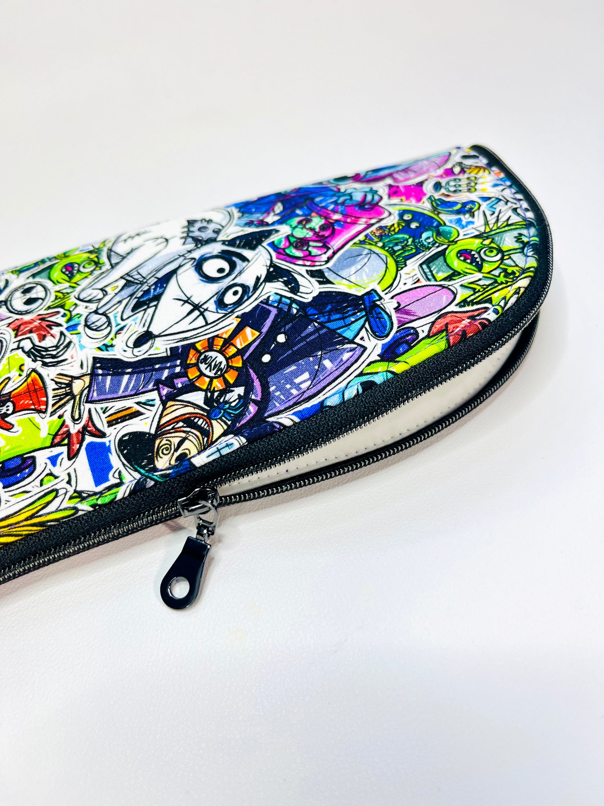 A soft case for glasses, sunglasses, as a pencil case, crochet hooks, or anything really. It will even hold reusable straws. It opens all the way, making your items quick to get out when needed and easy to put back. The case is flat when not in use, and has a foam added for extra protection when it's in your bag.